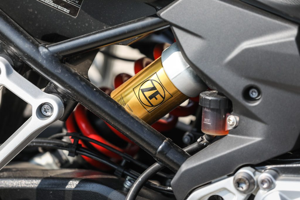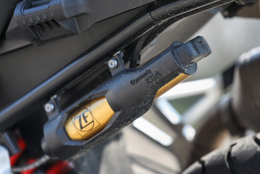 Exact așa cum trebuie. Dacă o accelerezi puternic după ce pleci de pe loc are tendința să se ridice pe o roată, meritul motorului fiind împărțit cu cel al cutiei bine etajate. După ce se încălzește începe să dea mai des mici rateuri în toba Akrapovič. Suspensia este ideală pentru drumuri proaste, ca să nu le spun românești. Ruta aleasă a inclus Rucăr Bran, iar unele porțiuni erau mai rele decât un drum forestier decent și a trebuit să reglez ESA-ul (disponibil opțional) ca spatele să nu mai fie atât de rigid.