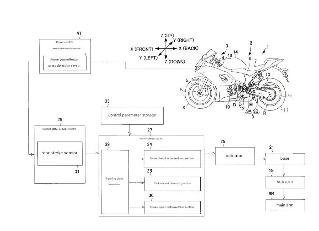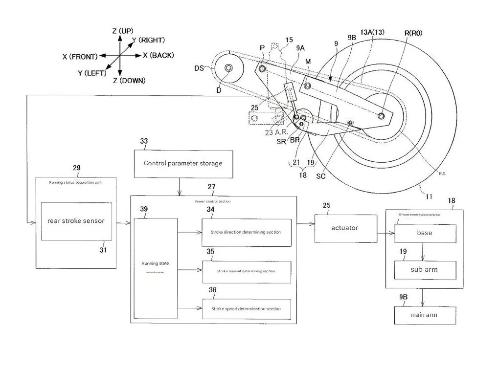 Yamaha a depus un nou brevet care descrie o basculă spate cu geometrie variabilă, capabilă să modifice poziția roții spate în timpul mersului. Scopul acestui sistem este ajustarea dinamică a aderenței în viraje, în funcție de impulsurile pilotului și viteză.