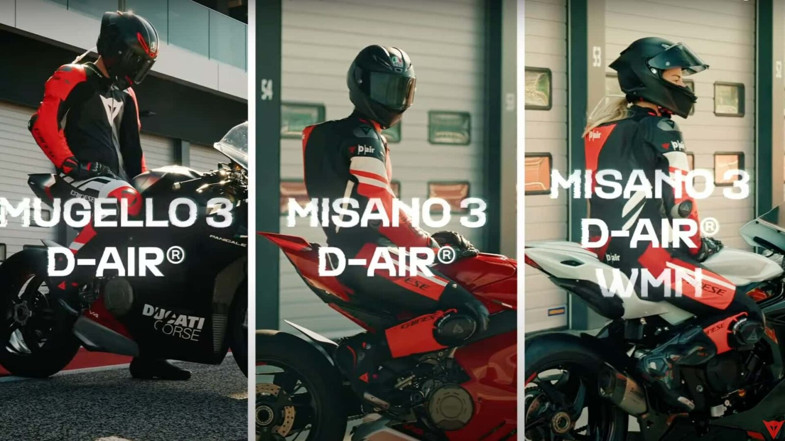 În comparație cu predecesoarele lor, costumele Dainese Mugello 3, Misano 3 și Misano 3 Women sunt cu 20 de procente mai ușoare, ceea ce e o realizare în sine. Inginerii au lucrat și la ventilația acestor costume, iar echipa de proiectare a lucrat cu rideri din MotoGP pentru a se asigura că sunt potrivite și pentru sesiuni prelungite în șa. În urma acelor teste, a fost modificată forma costumului în jurul gâtului prin Dainese Veloce Racing Neck, așa cum îl numesc italienii. Rezultatul îmbunătățește circulația și confortul prin reducerea presiunii puse de costum pe gâtul riderului.