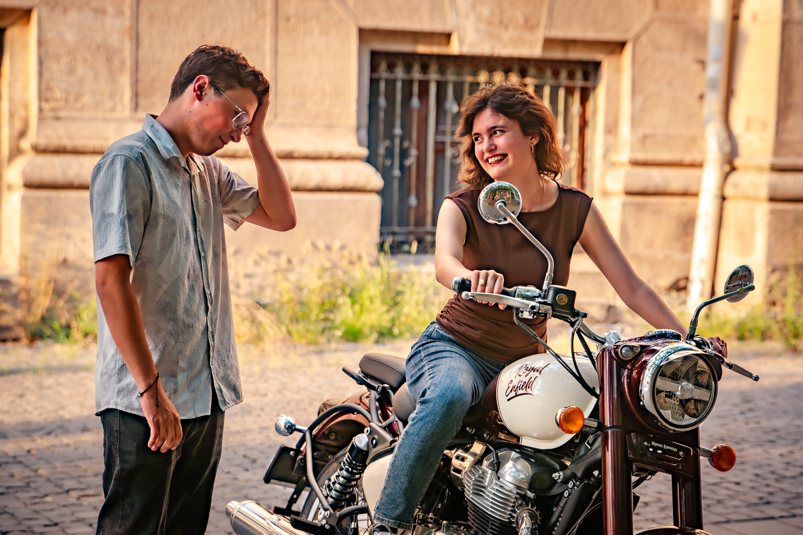 Ea: M-am plictisit! Toată ziua, vorbești prea mult despre motociclete. Hai să mergem să ne plimbăm, conduc eu de data asta. În sfârșit, am găsit o motocicletă potrivită pentru înălțimea mea.