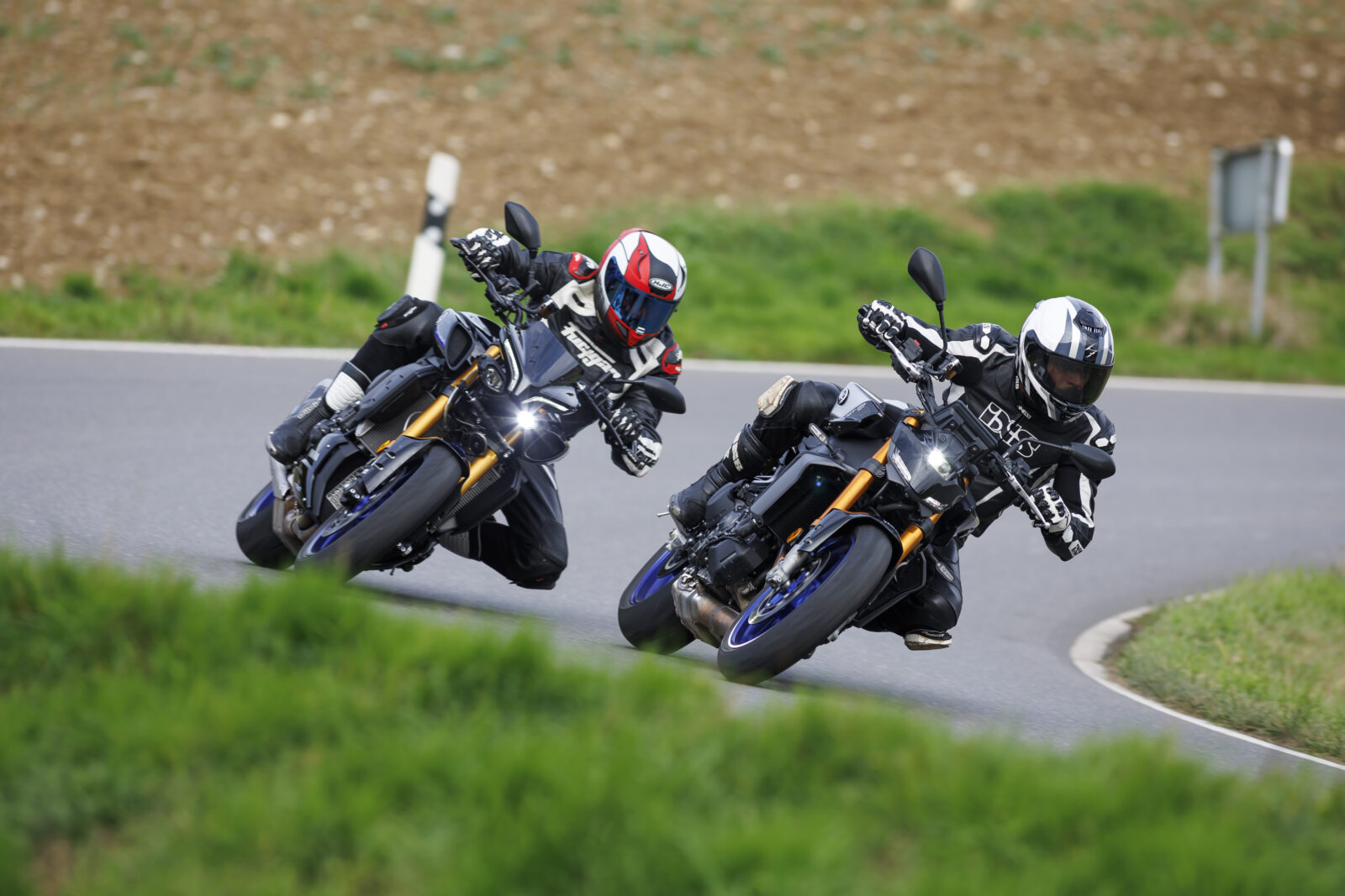 De două ori mai entuziasmante. Nici CP3, nici CP4 nu doboară vreun record de performanță, dar se dovedesc a fi adevărate uzine de forță în utilizarea de zi cu zi și contra cronometru. Până la aproximativ 7000 rpm, în mare măsură există egalitate, având în vedere și avantajul de greutate al MT-09 SP. După aceea, CP4, derivat din motorul de la R1, înscrie timpi fabuloși pe hârtie și îți așterne un zâmbet pe față cu răgetul său ferm și funcționarea ireproșabilă. Triilindrul are o creștere liniară, dar nu reușește să atingă explozivitatea și plăcerea de a se tura cvadricilindrului. Pe de altă parte, funcționează mult mai lin din punct de vedere mecanic, nu este exagerat de ambițios când tragi de accelerație și este mult mai rezervat la pompa de benzină. Per total, este motorul mai armonios în utilizarea de zi cu zi, dar dovedește totuși mult caracter cu mormăitul său și dorința spontană de a performa.