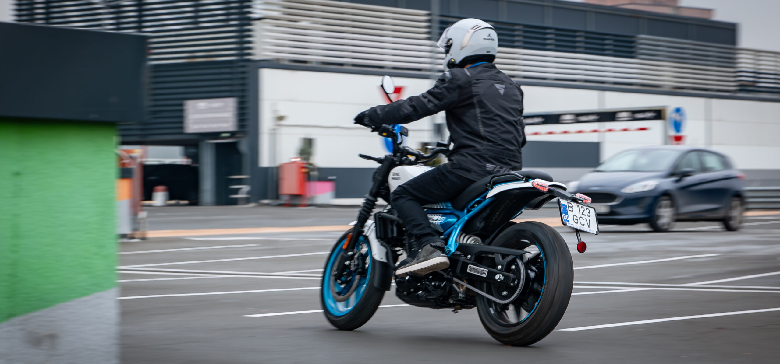 Să începem cu motorul. Monocilindrul de 40 CP nu arată a ceea ce este de fapt. La citirea specificațiilor, te-ai aștepta la puțină putere în ture mici, dar funcționează fără probleme de la 3000 rpm, apoi își livrează imediat cuplul maxim, pentru a dezvolta o explozie de la puțin sub 6000 până la limitarea de la 8500 rpm. Răspunsul accelerației este plăcut de fin în ambele moduri de condus, Performance și Eco. Cutia de viteze s-a dovedit, de asemenea, bună, bine etajată, destul de rapidă și destul de lină, în timp ce ambreiajul a fost mai puțin convingător, un pic imprecis atunci când îl eliberezi. În oraș este ușor, suplu, gata de acțiune. La nevoie, o treaptă în jos, și se transformă complet. Un motor docil, pentru driblat mașini la coadă, cu treapta a doua, fără să obosești ambreiajul.