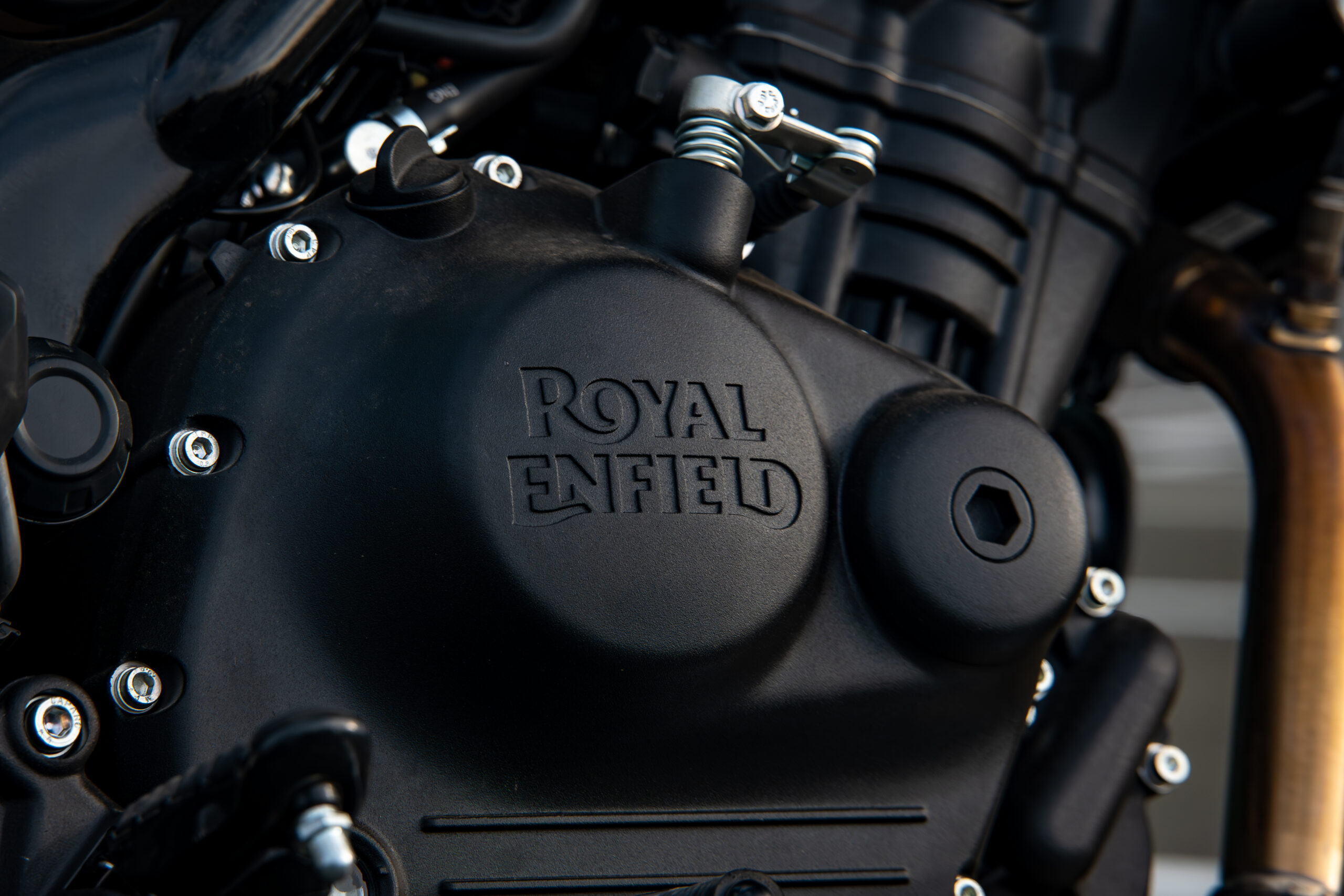De fapt, proiectele Himalayan și Guerrilla au demarat în același timp, cele două motociclete noi dând startul la ceea ce RE numește linia sa neo-retro de modele care prezintă o estetică mai modernă decât cele precum Classic 350. Cele două motociclete împărtășesc același motor, modernul Sherpa de 452 cm3, despre care se afirmă că dezvoltă aceeași putere, de 40 CP. Dintre cele două, Guerrilla are pinionul din spate mai mic (45, față de 47) și o roată posterioară mai mică, ce, pe cont propriu, nu oferă o mare diferență în ceea ce privește senzația.